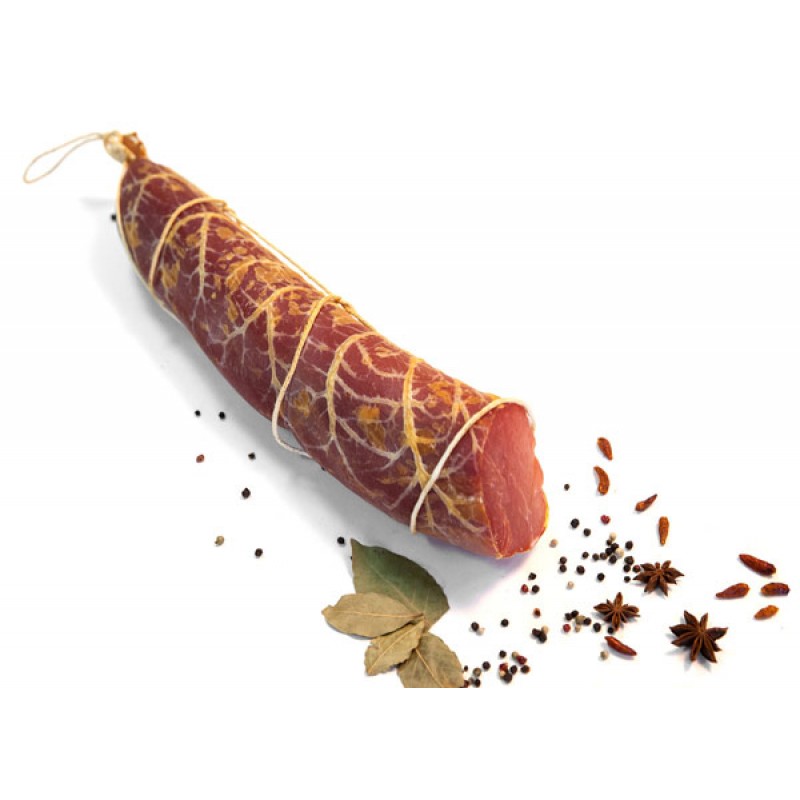 Παρασκευάζεται από εκλεκτό χοιρινό καρέ, φυσικό έντερο, αλάτι, μαύρο πιπέρι και καπνίζεται με αρωματικά ξύλα, ακολουθώντας πιστά την παραδοσιακή μέθοδο των Κυκλάδων.