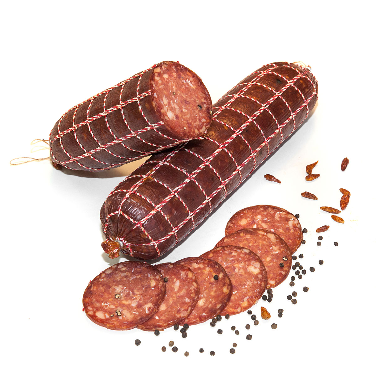 Το Σαλάμι Αέρος Chili είναι ένα εκλεκτό αλλαντικό φτιαγμένο από διαλεχτό χοιρινό κρέας, με πλούσια καρυκεύματα και έντονη γεύση chili που προσφέρει μια πιπεράτη και αρωματική εμπειρία. Η φυσική διαδικασία ωρίμανσης και το καπνιστό άρωμα του ξύλου οξιάς αναδεικνύουν τη μοναδικότητά του. Κόβεται σε λεπτές φέτες, ιδανικές για κάθε στιγμή.